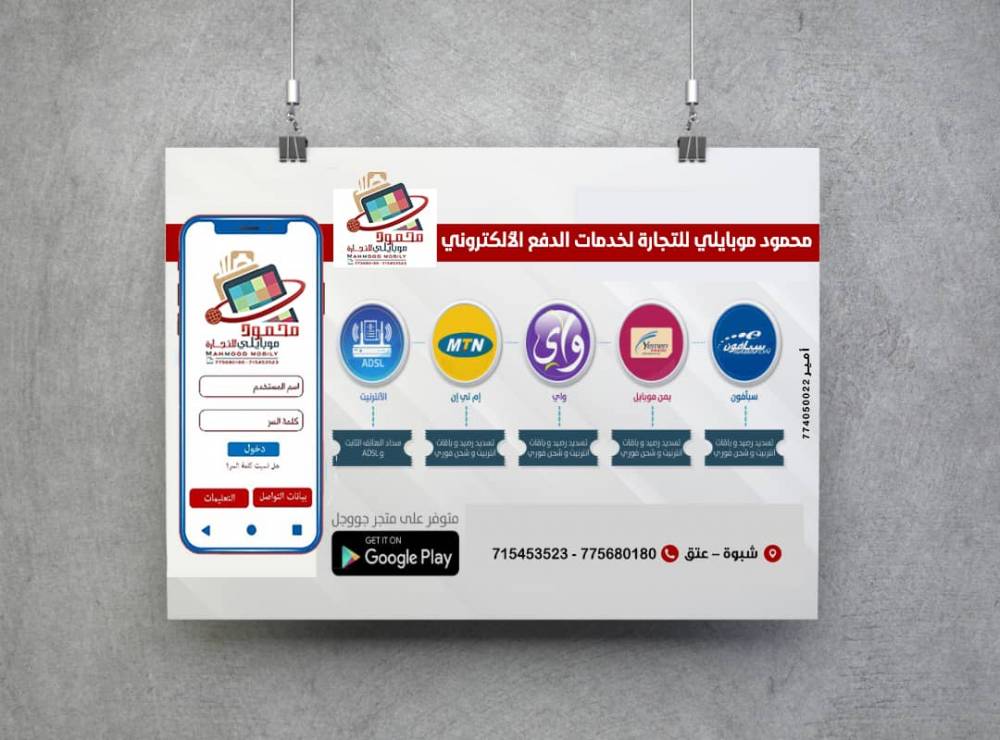تقوم محمود مبايلي بتقديم خدمات جميع شبكات الاتصالات اليمنية من إضافة دقائق اتصال او حزم باقات الانترنت لأرقام الهواتف وتفعيل حزم الانترنت وذلك عبر الروابط الممنوحة لنا من شركات الاتصالات اليمنية .